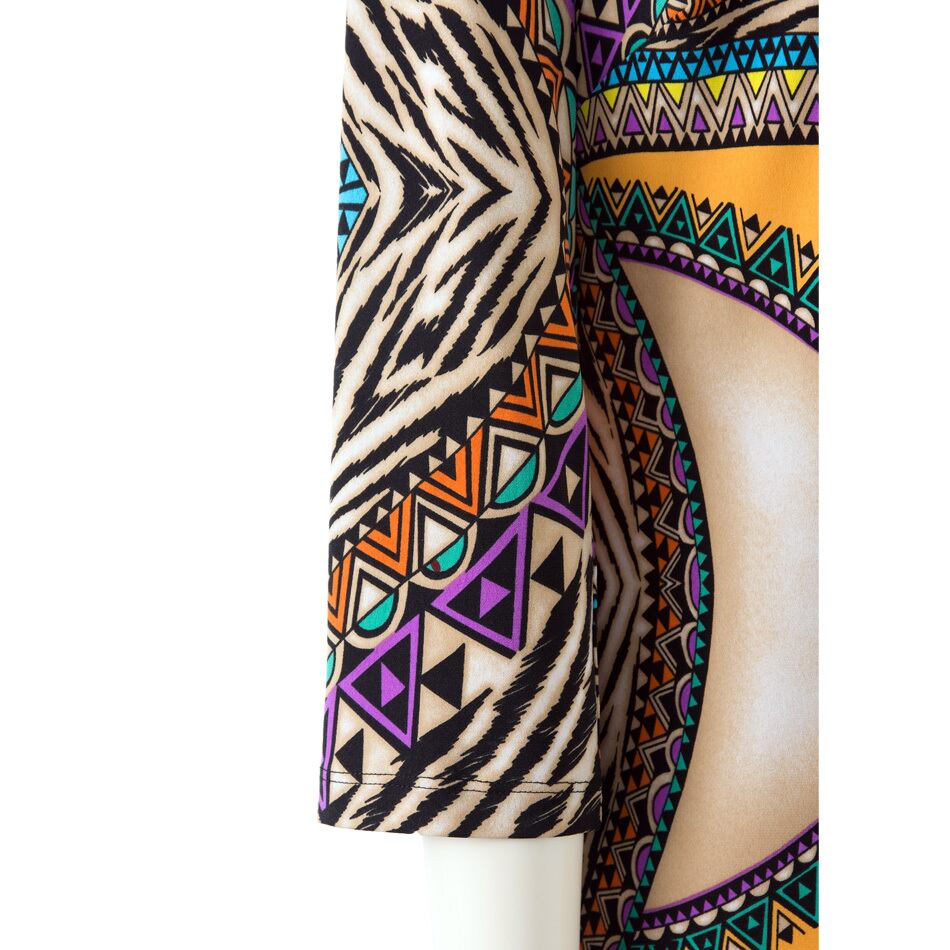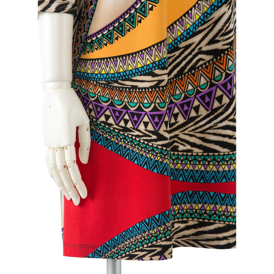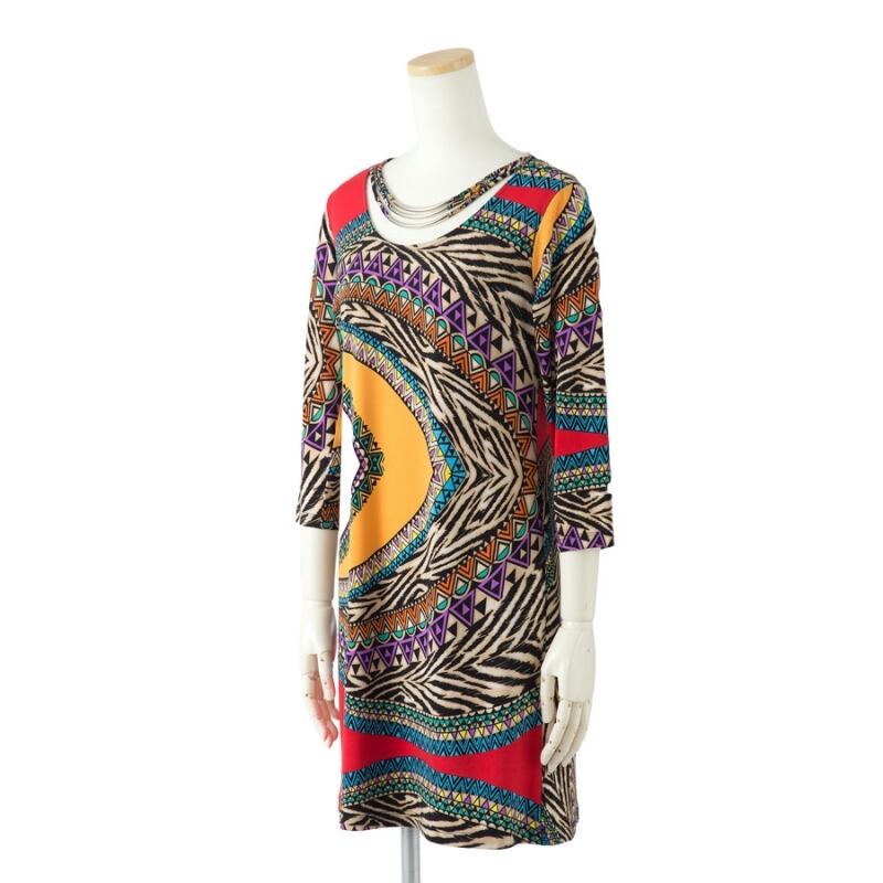 マルチカラーの個性的なエスニック風プリントワンピースです。