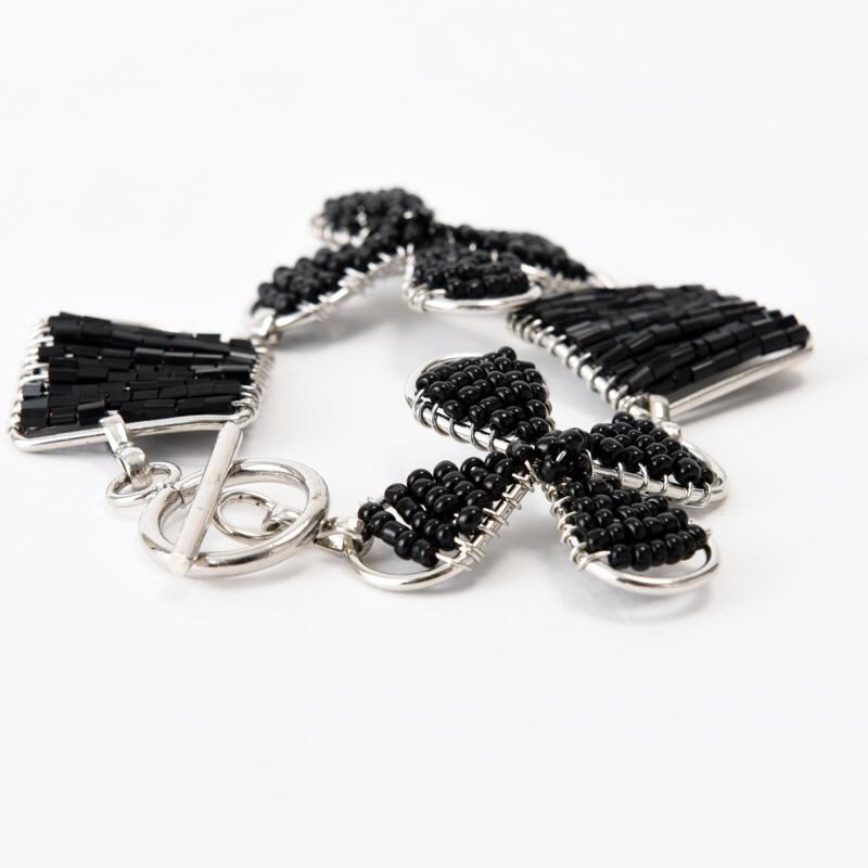 シルバーのワイヤーとブラックビーズがこんなにも魅力的なデザインになりました。